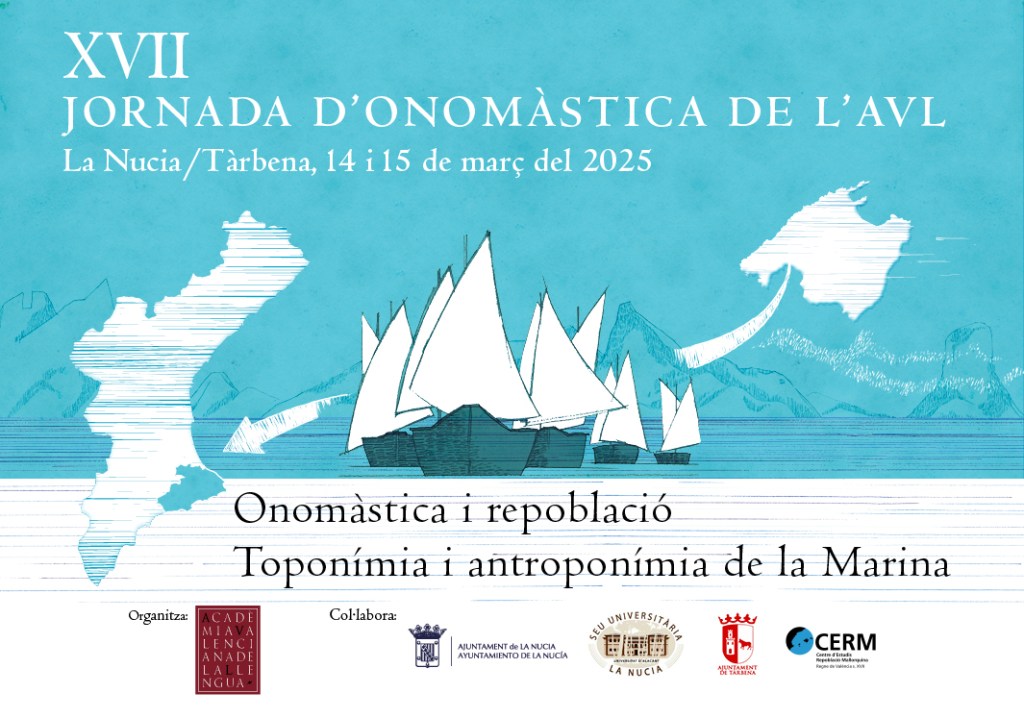 L’Acadèmia Valenciana de la Llengua (AVL) organitza la XVII Jornada d’Onomàstica, els dies 14 i 15 de març a la Nuc a i Tàrbena. Estes jornades, dedicades a l’estudi de la toponímia i l’antroponímia de la Marina, pretenen aprofundir en la influència dels processos històrics de repoblació sobre els noms de lloc i de persona en el territori valencià.