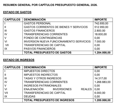 El presupuesto total para 2026 asciende a 1.284.000 euros, por lo que el gasto en personal representa casi el 58% del total, consolidando a los servicios sociales como un ámbito intensivo en recursos humanos.